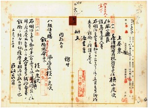 臺灣總督府稅務官正七位橫山虎次鳳山廳長任命ノ件(高等官六等八級俸下賜)