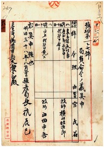 臺灣總督府技師橫山壯次郎民政部殖產局農商課長竹島慶四郎不在中代理命令ノ件、總督府技師山田中吾農商課長代理ヲ免ス