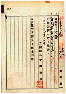 宜蘭廳告示第百十號駱開來外一名船鑑札流失ノ件