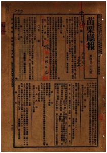 苗栗廳告示第百二十五號牛疫流行地同屬ノ通行遮斷彰化廳ヨリ通知