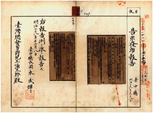 臺中廳告示第百十二號牛疫流行地仝屬等ノ通行運搬停止中ノ所解除通知