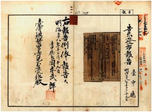 一一〇 第一一九号 鳳山庁興隆内里哨船頭街駱再来・鳳山庁大竹里旗後街蔡泉ハ船鑑札流失ニ付キ該鑑札ヲ無効トスル旨同庁ヨリ通知ノ件