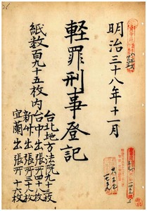 明治三十八年十一月分輕罪刑事登記(台北地方法院、台中出張所、新竹出張所、宜蘭出張所)