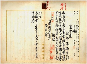 技師高橋辰次郎爪哇印度埃及及歐米各國ヘ派遣ノ儀稟申ノ件(總理大臣)