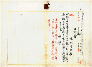 一三 塩水港庁村上先ヨリ伺出ノ同庁警部補白井長蔵ヲ属ニ転