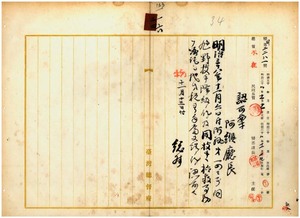三四 阿緱庁長佐々木基ヨリ内申ノ同庁管内牛疫猖獗ヲ極メ多大ノ損害ヲ蒙リツツアル為メ防疫部ヲ特設シテ防致シタル処適任者無ク、同庁総務課技手鳩野正雄カ獣医ノ資格アルニ依リ本人承諾ノ上降級シ、検疫事務ヲ嘱託シ地方税ヨリ手当支給ノ儀ニ付キ認可ノ件