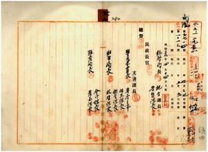 六七 台北庁・深坑庁・南投庁ノ庁令、台北庁・新竹庁・南投庁・塩水港庁ノ訓令、台北庁・基隆庁・深坑庁・南投庁・嘉義庁・塩水港庁・台南庁ノ告示供閲ノ件