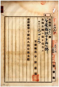 二〇 第一七号 明治三六年六月宜蘭庁訓令第二四号宜蘭庁処務細則中改正ノ件
