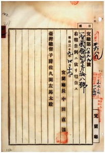 二一 第一八号 明治三九年宜蘭庁告示第四七号ニ依リ土地ニ関スル申告書ヲ受理シタルトキノ取扱方ノ件