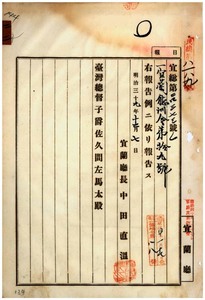 二二 第一九号 明治三六年五月宜蘭庁訓令第二一号地方税調査委員手当支給規則廃止ノ件