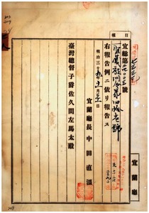 宜蘭廳訓令第四十一號本年訓令第三十五號警察報告例中改正
