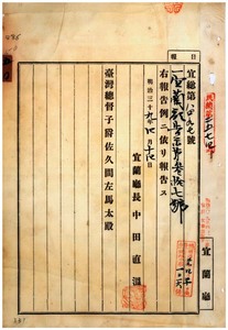 五〇 第三七号 基隆庁及ヒ台北庁両管内ニ豚虎列剌発生並ニ桃園庁管内ニ牛疫発生ニ付キ各管轄庁ヨリ通知ノ件