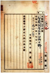 五八 第四五号 基隆庁及ヒ深坑庁両管内ニ豚虎列剌発生ニ付キ両庁ヨリ通知ノ件