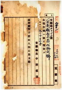 八九 第九二号 桃園庁管内ニ豚虎列剌発生ニ付キ同庁ヨリ通知ノ件(1906-10-25~1906-11-27);第九三号 宜蘭庁頭囲堡港澳庄蕭維翰ヲ阿片烟膏取次人ニ指定ス(1906-10-26~1906-11-27)