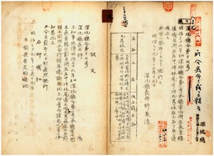 九 第一七号 明治三六年四月深坑庁令第一号深坑庁管内街庄長管轄区域及街庄名中坪林尾区ノ内九崇林庄ノ土名改正ノ件