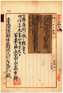 一三三 第四三号 台中庁管内ニ牛疫発生蔓延ノ虞アルニ依リ牛羊ノ出入及病毒伝播ノ虞アル物品ノ運搬ヲ停止シタル旨同庁ヨリ通知ノ件