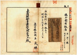 臺中廳廳令第二十七號井仔頭庄牛疫發生シ蔓延ノ兆アリ流行地トス
