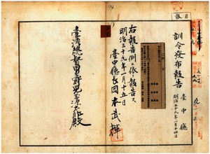 臺中廳訓令第四號人口動態小票取扱順序改正
