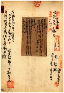 七 第二七号 南投庁北投堡北勢囚庄ニ牛疫発生ニ付キ牛羊属ノ出入及病毒伝播ノ虞アル物品ノ運搬ヲ停止ス