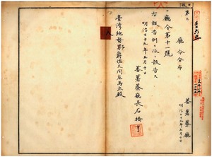 蕃薯廳廳令第十一號管下港西上里瀰濃庄ヲ豚疫流行地トシテ豫防ノ件