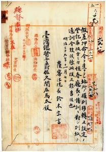 九 恒春庁長ヨリ仮差押命令ヲ受ケタル地所ノ権利移転及設定ノ登記取扱方ニ関スル請訓ニ対シ訓令シタル旨覆審法院長鈴木宗言ヨリ報告ノ件