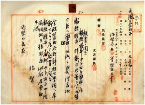 六 桃園庁管内ノ桃園尋常高等小学校・南響公学校石観音分校・南響公学校大邱園分校・大蕎響公学校内柵分校、台東庁管内ノ台東公学校成広澳分校・公埔公学校・花蓮港公学校・馬蘭社公学校・卑南社公学校・知本社公学校・太麻里公学校・璞石閣公学校・薄薄公学校・太巴珂公学校・台中庁管内塗葛堀公学校ヘ教育勅語謄本奉戴顛末報告ノ件