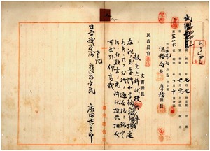 八 桃園尋常高等小学校及ヒ桃園庁事務嘱託広田吉三郎ニ無試験検定公学校教諭免許状授与ノ件