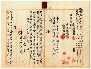 一四 明治三九年七月告示第五一号特設電話事務取扱ヲ為ス郵便電信局及電話所ノ名称並其ノ位置及指定区域ニ金包里電話所ヲ追加(告示第九五号)、明治三九年六月府令第四五号中第二号電話交換料ノ部ニ金包里ヲ追加(府令第七一号)ノ件