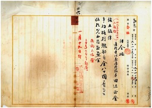 三三 台湾総督府通信書記兼通信技手田辺正登ハ疾病ニ罹リ職ニ堪ヘサル旨ヲ以テ辞職願ニ依リ昇級ノ上事務格別勉励ニ付キ一時金ヲ賞与シ本官並ニ兼官ヲ免ス