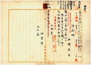 一七 台湾総督府民政部殖産局長代理横山壮次郎ノ内申ニ依リ山崎平吉ニ商工ニ関スル事務ヲ嘱託シ民政部殖産局勤務ヲ命スルモ兵役ノ関係ヨリ取消シノ件