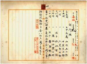 三 台中庁長岡本武輝ノ内申ニ依リ台中庁属ノ山内五六郎・甲斐完治郎・人見虎之助・松井愛之助及ヒ台中庁技手ノ佐伯智敏・豊島恕興ニ台中庁第一回農産物品評会ニ関スル事務格別勉励ニ付キ一時金ヲ賞与ス