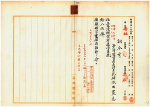 三一 澎湖郵便電信局長向井田善五郎ノ内申ニ依リ澎湖郵便電信局勤務台湾総督府通信書記補水田寛志ヲ台湾総督府通信書記ニ任シ澎湖郵便電信局勤務ヲ命ス