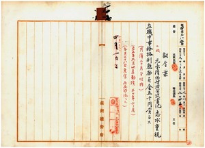 五二 鳳山医院長事務取扱高柳元六郎ノ内申ニ依リ元台湾総督府医院書記志水重視ヘ在職中事務格別勉励ニ付キ一時金ヲ賞与ス