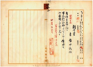 三七 台湾総督官房文書課長心得斎藤愛二ノ内申ニ依リ一年志願兵入営ノ為メ辞職シタル総督官房文書課勤務台湾総督府雇原田民治ヲ増俸ノ上事務格別勉励ニ付キ賞与シ御用済ニ付キ雇ヲ免ス