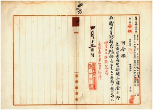 四 塩水港庁長村上先ノ具申ニ依リ元塩水港庁警部補三浦金三郎ヘ在職中事務格別勉励ニ付キ一時金ヲ賞与ス