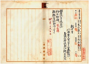 四九 台北庁長佐藤友熊ト苗栗庁長家永泰吉郎ノ内申ニ依リ苗栗尋常高等小学校勤務台湾小学校教諭縄田虎熊ヲ台湾公学校教諭ニ任シ枋橋公学校勤務ヲ命ス