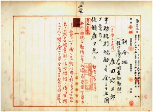 二二 臨時台湾戸口調査部勤務台湾総督府雇臨時田島力郎ハ疾病ニ罹リ職ニ堪ヘサル旨ヲ以テ辞職願ニ依リ事務格別勉励ニ付キ一時金ヲ賞与シ雇ヲ免ス