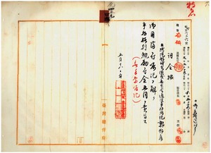 四五 台湾汽船職員懲戒委員会通訳事務嘱託台北庁通訳郭邦彦ハ疾病ニ罹リ当分全治ノ見込ナク退官願ニ依リ嘱託ヲ解キ事務格別勉励ニ付キ一時金ヲ賞与ス