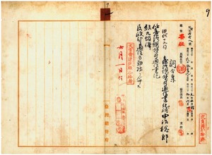 一 台湾総督府民政部通信局長鹿子木小五郎ノ内申ニ依リ台湾総督府通信書記補中治稔郎ヲ台湾総督府通信書記ニ任シ民政部通信局勤務ヲ命ス