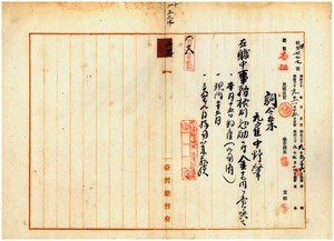 五三 臨時台湾戸口調査部長後藤新平ノ内申ニ依リ六月一五日付解雇トナリタル元同局雇中野肇ヘ在職中事務格別勉励ニ付キ一時金ヲ賞与ス
