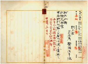 七 台湾総督府台北庁属柴岡信平次ハ疾病ニ罹リ職ニ堪ヘサル旨ヲ以テ辞職願ニ依リ昇級ノ上本官ヲ免シ事務格別勉励ニ付キ一時金ヲ賞与ス