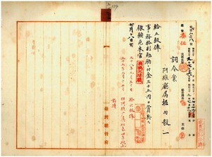 三三 阿緱庁属堀内毅一ハ疾病ニ罹リ職ニ堪ヘサル旨ヲ以テ辞職願ニ依リ事務格別勉励ニ付キ一時金ヲ賞与シ昇級ノ上本官ヲ免ス