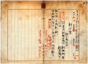 一 台湾総督府総務局長代理持地六三郎ノ内申ニ依リ総務局勤務総督府嘱託稲田綱吉・館森万平ヲ御用済ニ付キ嘱託ヲ解キ事務格別勉励ニ付キ一時金ヲ賞与ス