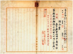 七 台中庁長岡本武輝ノ内申ニ依リ八月三日付脚気症ノ為メ依願免官シタ台中庁沙轆支庁第二監視区監督警部補中島末吉ニ事務格別勉励ニ付キ一時金ヲ賞与ス
