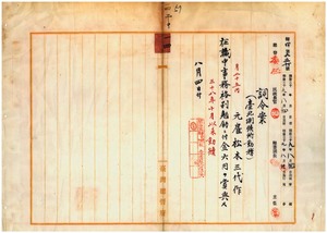 一四 台湾総督府民政部通信局長鹿子木小五郎ノ内申ニ依リ御用済ニ付キ解職サレタ台北測候所勤務元雇松本三代作ニ在職中事務格別勉励ニ付キ一時金ヲ賞与ス
