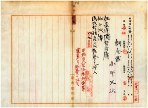 小平又次總督府屬ニ任用殖產局勤務ノ件