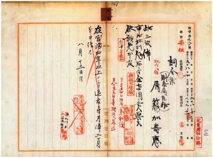 三三 台湾総督府民政部財務局勤務属籠加寿恵ハ麻拉里亜ニ罹リ職ニ堪ヘサル旨ヲ以テ辞職願ニ依リ昇級ノ上事務格別勉励ニ付キ一時金ヲ賞与シ本官ヲ免ス