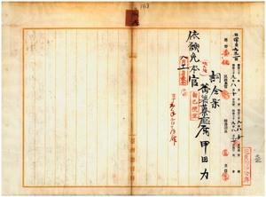 三八 蕃薯椙庁長石橋亨ヨリ、醜業婦ヲ独身宿舎ニ出入リセシメ、謝罪ノ際、饗応ヲ受ケ飲酒中争論ヲ起シ腕力ヲ以テ器物ヲ破壊シ他人ニ負傷セシメタ為メ懲戒ニ付キ具申アリタル蕃薯椙庁属甲田力ノ解職願ニ依リ本官ヲ免ス(本人ノ始末書、田中税務課長報告書、長塩総務課長ノ上申書、大島属ノ開陳書、野村属ノ始末書、福地技手ノ復命書、若林嘱託ノ始末書、佐藤技手ノ上申書、長田属ノ復命書各一通あり)