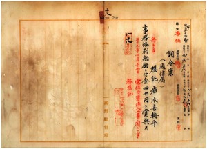 四 台湾総督府民政部通信局長鹿子木小五郎ノ内申ニ依リ電柱丹礬注入工事ニ関スル事務嘱託通信属岩本喜輪平ニ事務格別勉励ニ付キ一時金ヲ賞与ス