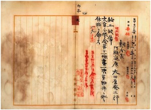 六 阿緱庁長佐々木基ノ内申ニ依リ阿緱庁属大田原発次郎ハ麻拉里亜ニ罹リ転地療養ノ為メ昇級ノ上文官分限令第十一条第一項第四号ニ依リ休職ヲ命ス